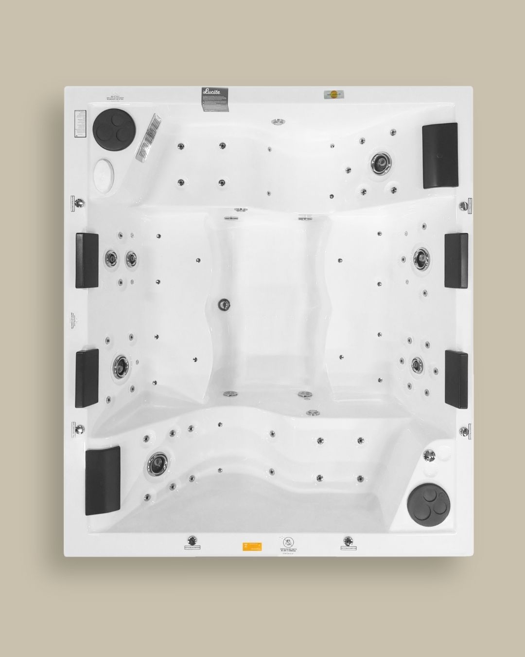Cada assento uma distribuição de jatos para proporcionar diversas possibilidades de experiência, inclusive com controle de fluxo e abertura individualizada, bem como a mais robusta motobomba do mercado – uma exclusividade Amazon Spa focada em seu bem-estar.