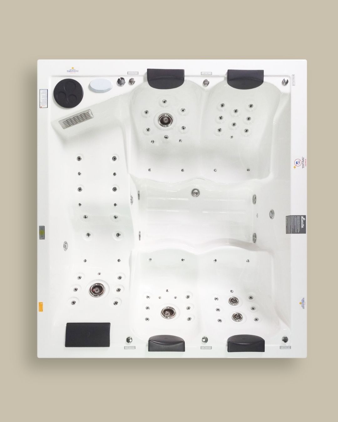 Jatos complementares de Air Blower que proporciona o efeito champagne na água garantindo uma massagem super relaxante.